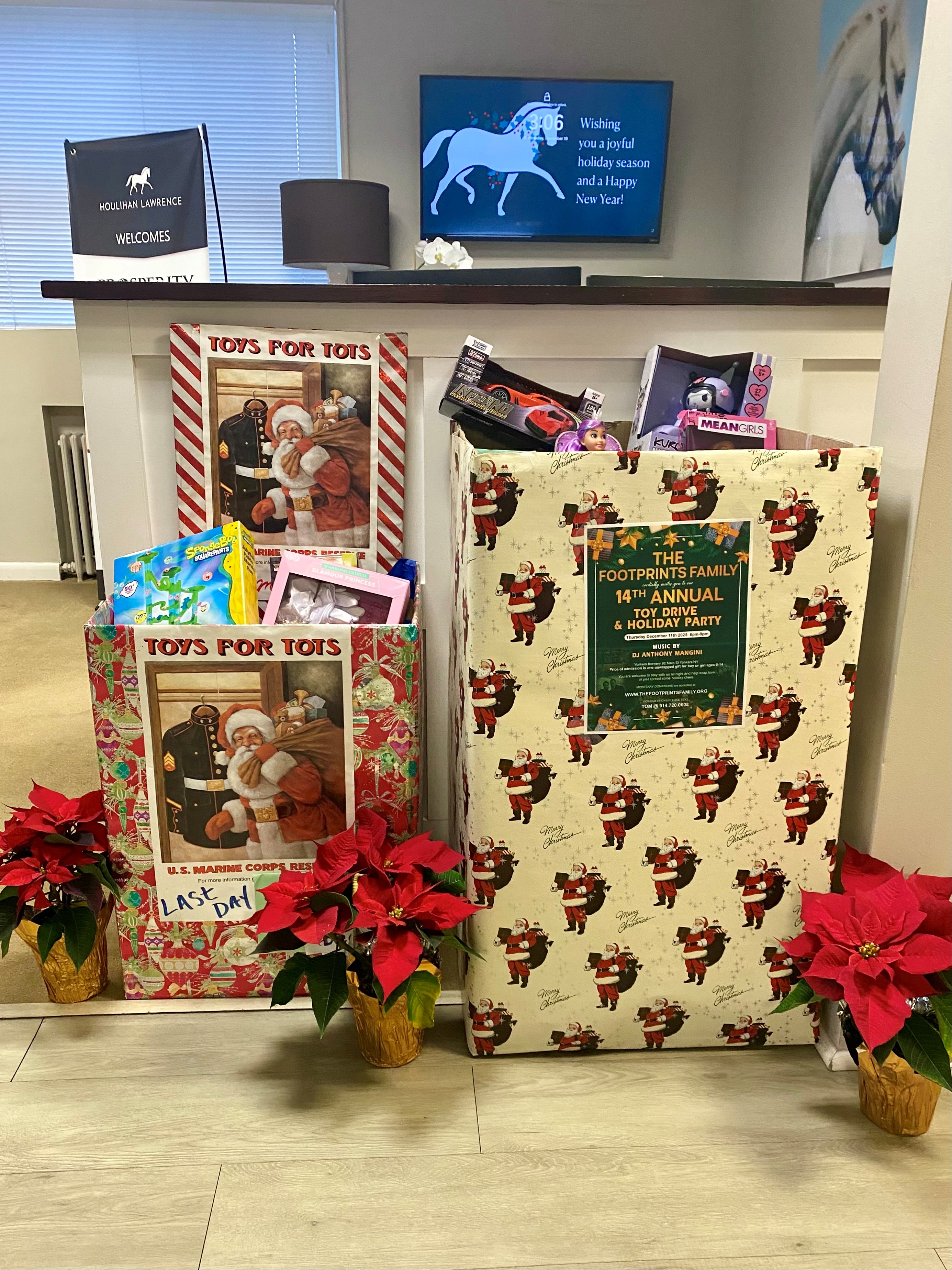 Each year, the Houlihan Lawrence Yonkers office, led by agents Robert Mangieri and Shirley Jacobs, supports organizations by providing toys to children who are less privileged. Rob is actively involved with Toys for Tots of Westchester County sponsored through the Marine Corps Reserve of Westchester, and Shirley is actively involved with The Footprints Family Toy Drive.