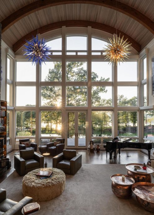 The approach to Stonecrest is unforgettable, with geometric rooflines and a dramatic portico setting the tone for what’s to come. Inside, soaring walls of glass and thoughtfully placed windows bathe each space in natural light, dissolving boundaries between indoors and out.