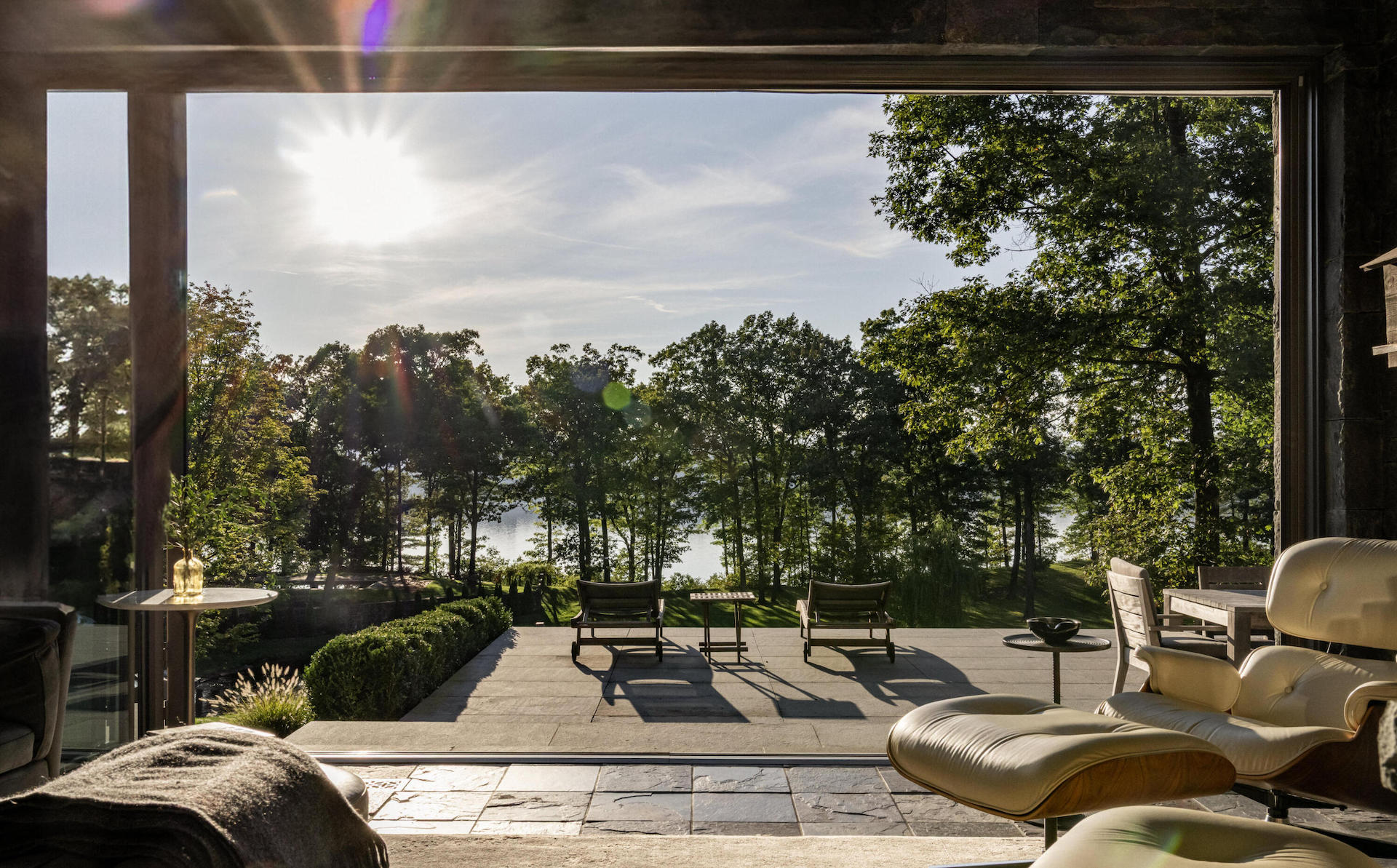 Stonecrest is a home of surprises, none more magical than the hidden library tucked behind a secret door in the north wing. With floor-to-ceiling windows, a fireplace, private bluestone patio, and uninterrupted river views, this special space feels like a sanctuary within a sanctuary.